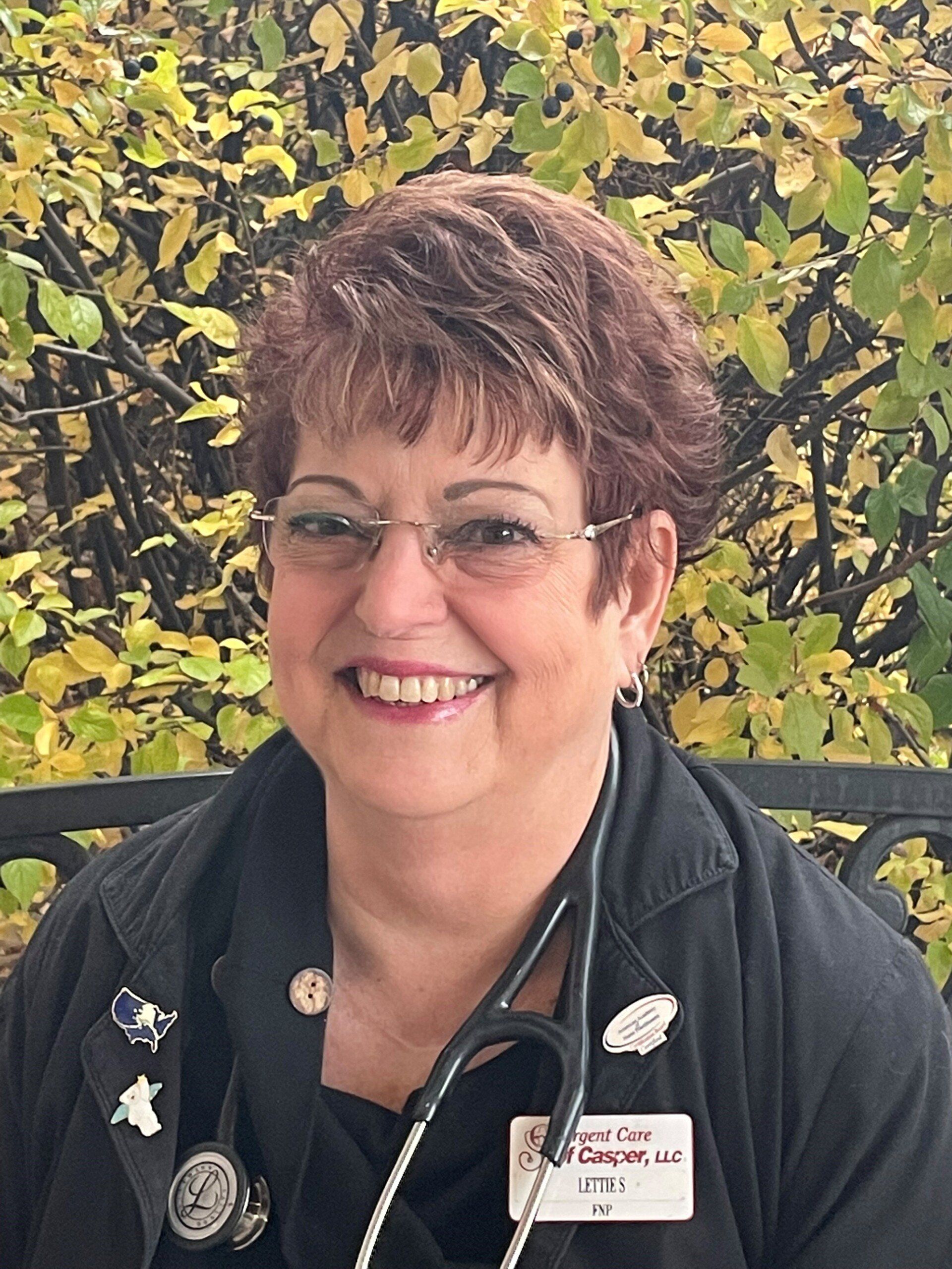 Lettie is a board certified Family Nurse Practitioner. She was born and raised in Southern California. She moved to Casper in 1981 and raised 3 children here. After moving to Wyoming in 1981 Lettie started working at Wyoming Medical Center as a CNA and decided to become a nurse. She graduated from Casper College in 1984 and from University of Wyoming with a Bachelor Degree in Nursing in 1993. She worked as a nurse mainly in the ICU at Wyoming Medical Center from 1981 until 2009. She graduated from University of Wyoming with a Master’s degree in Nursing with focus as Family Nurse Practitioner and worked in Oncology after graduating until the practice closed. Lettie started at Urgent Care of Casper in March of 2010 and have been here since. Lettie is a quilter, machine embroiderer and grandma to 9 awesome grandkids. Her children live in different states-Texas, Colorado, and Alaska. She loves to visit and spoil her babies as much as she can. She is a passionate Nurse Practitioner who cares deeply about the patients she sees in the clinic. Her focus is on the whole person and their wellbeing.